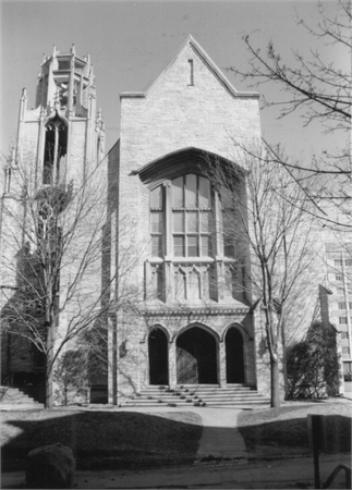 | University Presbyterian Church and Student Center 731 State Street, Madison, Dane County Architect: Edward Tough Builders: J.H. Findorff & Sons Date of Construction: 1931-35 At the turn of the 20th century the number of students attending state universities increased far more than those attending church-sponsored colleges. Outreach missions were established near campuses because religious instruction was prohibited at the state institutions. The Presbyterian Synod of Wisconsin organized the "Presbyterian Student Union," also called the Pres House by students, to provide a spiritual culture for students at the University of Wisconsin. The union grew rapidly and by 1920 they acquired property on the east end of the University campus. A residential house served as the chapel and clubhouse for the students until membership became too large for the small facility. In 1930 construction began on a new church and student center. Edward Tough, a Scottish immigrant, designed the building in the English Gothic and Tudor styles. A massive stone tower dominates the front façade of the Pres House. Tracery, pinnacles and an accolade decorate the tower. A polygonal belfry crowns the tower. Stone buttresses with pinnacles further adorn it. Tough served as the Wisconsin State Architect for a number of years and specialized in the design of schools and churches. The interior includes a chapel, student center, offices, and an apartment to house the pastor and his family. A massive stone fireplace dominates the first floor lounge. The Tudor arched opening is enriched with compound moldings and a tall mantle is decorated with shields and ribbons. Many other embellishments throughout the interior include Tudor roses, acorns and fleur-de-lis, rope molding, tulips, grapes, and leaves. The focus of the Pres House ranged from student support to national issues and international humanitarian efforts. Today it remains a support center for the religious faith of students. The Pres House is open during regular hours.