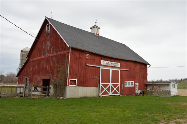 Alexander and Caroline were married in in the fall of 1846 and began farming on the property the following spring. The Hammond Farmstead’s existing agricultural outbuildings were constructed between 1901 and c.1965 by subsequent generations of the Hammond family. The outbuildings reflect the evolving agricultural trends – from tobacco cultivation to dairy farming – that were prevalent in southeastern Dane County during this period. In addition to the original Alexander and Caroline Hammond house which features a hewn wood frame, buildings on the farmstead include a dairy barn (1901) with attached milk house (c.1950), a freestanding milk house (c.1910), a tobacco stripping house (c.1910), a garage (c.1938), a tobacco shed (1946), and a concrete stave silo with attached trough (c.1965). The property also contains a corn crib (c.1990) and a secondary house (originally a Quonset building) that was moved to the property in 1949 with a 1960 addition. Taken as a whole, the Hammond Farmstead is an excellent local representative of the evolution of a family tobacco and dairy farm from the mid-nineteenth century to the mid-twentieth century.