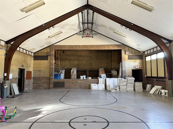 The school building exhibits characteristics of classically derived styles popular at the turn of the twentieth century, specifically Italian Renaissance Revival. Although designed by two architects, Truman Dudley (T.D.) Allen and Christian H. Tegen, the three sections of the school building present a cohesive unified appearance with each successive addition adjoining seamlessly with the next. In 1938, the gymnasium was constructed with funding from the Public Works Administration (PWA). The gymnasium, which was designed by William and Frederick Raeuber, is a one-story building that is generally rectangular in plan consisting of a small entrance foyer at the east end of the multi-use auditorium and gymnasium space which features a rostrum at its west end.