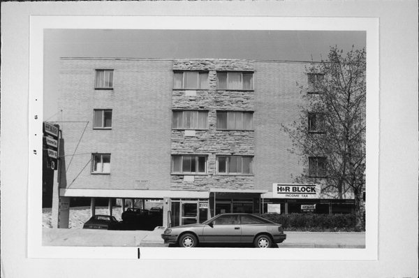 Additional Information: | Resurveyed as part of Milwaukee Downtown Connector Arch/History Survey (2010), Prepared by Heritage Research. 2010: This four-story, Contemporary-style combined apartment building and business block has a brick and stone veneered primary (southeast) facade. The stone veneer is centered on the building and is irregularly stacked. The first floor includes an exposed parking garage and a commercial space outfitted with plate-glass windows. Fenestration in the upper stories is comprised of large sliding units. Designed by William Paschke, the subject building was constructed in 1965. |