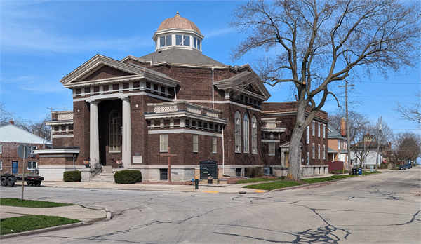 Additional Information: | A 'site file' exists for this property. It contains additional information such as correspondence, newspaper clippings, or historical information. It is a public record and may be viewed in person at the Wisconsin Historical Society, State Historic Preservation Office. Organized in 1904, this congregation retained the Racine architectural firm, Chandler and Park, to draw plans for this neoclassical church. Its entrance portico is flanked by a handsome pair of fluted Doric columns, and the octagonal main auditorium is crowned with an octagonal lantern which has a standing seam sheet metal dome. The dark brown tapestry brick walls are trimmed with cut Bedford stone and art-deco-oriented, milk glass windows. PEDIMENTED PORTICO W/ FLUTED DORIC COLUMNSPEDIMENTS ON SIDESOCTAGONAL CENTRAL SECTION W/ DOMED CUPOLA [Date Cnst:-1913] South Side Historic District Walking Tour Guide: "The Plymouth Congregational Church was organized as the Racine Welsh Congregational Church in December of 1847. Its first home was a wooden building on College Avenue south of Eighth Street. A second church was built at 813 Park Avenue; it was sold in 1913 when the present church was completed. James Gilbert Chandler (1856-1924) was one of the finest and most prolific architects who ever practiced in Racine. He was born in Berlin Falls, New Hampshire, but was educated in Minnesota and Wisconsin. He studied carpentry for three years as an apprentice and later trained as an architect with D.R. Jones of Madison from 1875 to 1878. He established his practice in Racine the following year. His most significant local buildings are the First YMCA (1886) at 314-320 Sixth and the Church of the Good Shepherd (1895) at 625 College (both in the Historic Sixth Street Business District), as well as the Shoop Building (1893, 1899, 1902) at 222 Main (in the Old Main Street Historic District). About 1897 he joined with Linus H. Park in a partnership that lasted until about 1919. During those years, Chandler became a specialist in designing schools, which were built in Wisconsin, Minnesota, Illinois, and Iowa. Among those he designed in Racine are Janes (1896) at 1425 North Wisconsin and Winslow (1897) at 1325 College." Racine contractors who contributed to the building were: Mohr-Jones Hardware Co. (ironwork and slate), A. Jacobson (masonry), and Fred Hansen (carpentry). |