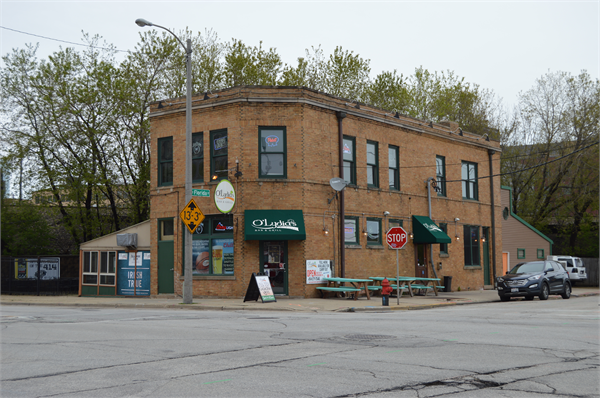 | Additional Information: | Brick corner tavern, minimal cast stone detailing. Replacement windows. 2020 - Located on the northwest corner lot of 1st Street and Florida Street, the primary entrance of the two-story, flat-roofed building is located at the cut-away southwest corner. Aluminum, fixed-pane windows have replaced original storefront windows on the western façade, while the remainder of the windows throughout the building are double-hung replacements. A metal doorway leading to the second story is located at the northwest corner. The building features modest brickwork and cast stone detailing, found in the soldier course of bricks which encircle the building above the first-and second-story doors and windows. A plain stone cornice band is located just below the unembellished parapet. |