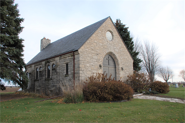 | Additional Information: | The Cambria Cemetery Memorial Chapel is situated at the extreme rear (east) end of the Cambria Cemetery. It is a small, front-gabled building finished with random, coursed lannon stone. The roof of this New-Gothic Revival chapel is covered with slate. The front (west) facade features a pointed-arch entrance portal surmounted by a traceried rose window. The entrance is composed of a pair of paneled wooden doors topped with a broad, pointed-arch, wooden screen. The side facades are nearly identical, displaying clinging buttresses and small, paired, pointed-arch windows with leaded glass. Stone corbelling enriches the side facades. A heavy, rectangular, stone chimney rises on the rear (east) facade.