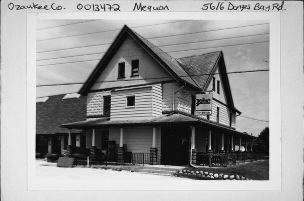 | Additional Information: | FIREPROOF BUILDING NEXT TO RR TRACKS. EXPOSED EAVE RAFTERS. HEAVY CONCRETE LINTELS. TRANSOM OVER DOOR. February 2002-This two and one half story tavern is constructed of rusticated concrete block. The cross-gabled roof is clad with asphalt shingles and each gable is covered with stucco. The eaves are open and feature exposed rafter tails. The west, south and east sides carry an open, wrap-around porch supported by Tuscan concrete columns resting upon concrete block piers. A modern, metal railing is located in front of the columns. The west endwall (left) carries a two story, shed roof entry addition sheathed with aluminum siding. The rear (north) elevation features a short, two story, plain concrete block wing from which projects a long, modern, restaurant addition sheathed with board siding and pierced by casement windows. The original block's fenestration consists of regularly placed, one over one, double hung sashes situated in openings created by concrete lintels and sills. The date 1911 is imprinted on one of these lintels. A large, metal clad volleyball arena is located behind the restaurant addition. Based upon interior and exterior observation, this property is believed to have been a tavern owned by August Gruenwald. Gruenwald most likely chose this location for his business because it was adjacent to a passenger shelter for the Milwaukee Northern Railway interurban line. August died in 1924 and the property was passed on to his wife Minnie, who sold it to Katherine Zeller in 1942. Zeller retained the property into the 1960s. No information on any of these owners was located. Today, the building is the site of Libby Montana's Bar & Grill. |