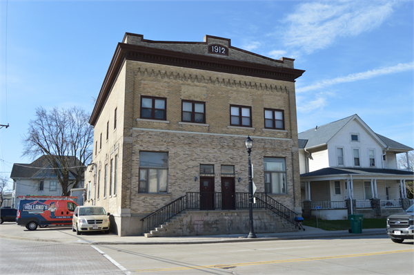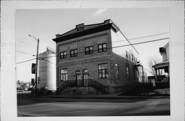 | Additional Information: | SHAPED PARAPET W/DATESTONES ON AT LEAST 2 SIDES. DENTILLED MOULDED EAVE. CORBELLED CORNICE. ALTERED WINDOWS AND 1ST FLR FRONT. UNUSUAL STILTED FLAT LINTELS W/LARGE KEYSTONE. One story addition was constructed in 1923. Was a grocery store until 1985. 1999- "This two-story commercial vernacular brick building was built in 1912 as theM. Stoffel & Company. The front facade of this flat-roofed building has a decorative parapet topped with a contrasting stone cornice. A wood cornice with dentils wraps the upper portion of the front facade and a portion of the east and west facades. Window openings on all facades have been altered, and windows have been replaced. Decorative brick hoods with a central limestone keystone remain on the first story level of the east and west facades, but the broadfront windows of the original storefront have been filled with bricks and modern windows. A large concrete porch with a double stairway and modern iron railing provides access to the two modern doors that replace the original entry door. There is a brick addition at the rear of the building." -"Allenton 7.5, Washington Co.", WisDOT#1412-02-00, Prepared by Mead & Hunt, Inc., (1999). |