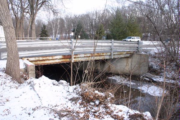 | Additional Information: | It is thought that the west structure across the mill race was erected in circa 1890.1 It is a single span, arched bridge constructed of concrete, with a substantial post and beam addition. The arch of the historic bridge is 17' -4" long and 24' wide, the top of which is about 6' above the river bottom. The post and beam addition extends the bridge's width 14 feet to the south? The bridge today claims a 33-foot wide traffic deck with an 8' -3" wide sidewalk to the south. An immediately adjacent, but detached, 4-foot wide plank sidewalk accommodates pedestrians on the notih side of the bridge. The railing on the bridge is beam guard, which means that the original, concrete railings were previously removed. An attractive, concrete arch bridge when constructed, the character of this structure was significantly impaired when its concrete railings were removed and it was widened. The arch portion of the bridge does remain, but it is substantially obscured from view--especially by the addition to the structure's width that extends to the south. steel beam or plate girder bridge |