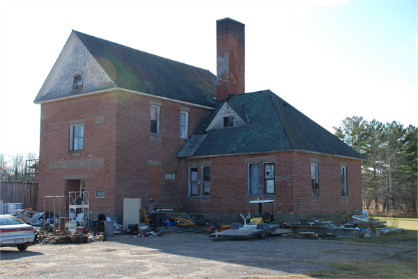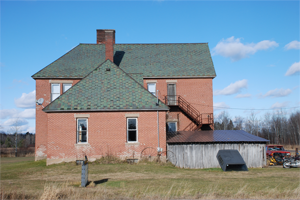| Additional Information: | A 'site file' exists for this property. It contains additional information such as correspondence, newspaper clippings, or historical information. It is a public record and may be viewed in person at the Wisconsin Historical Society, Division of Historic Preservation-Public History. Cruciform plan on poured concrete foundation. The main facade faces east onto CTH D. All of this building's door openings have dressed stone lintels and stone sills. In addition, almost all of the building's window openings retain their original one-over-one double hung wood sash windows and the building's original main entrance and its side and transom lights are also still intact. CENTRAL 2-1/2 STORY GABLED MAIN BLOCK W/WOOD SHINGLED GABLE. 1-1/2 STORY HIP-ROOF SYMMETRICAL SIDE WINGS, SMALL WOOD SHINGLED GABLET W/SMALL WINDOW IN EACH WING. PAIRED WINDOWS W/CONCRETE LINTELS, SEGMENTAL ARCH WINDOW IN FRONT GABLE. TRANSOM OVER ENTRANCE. 2011- "This previously surveyed cruciform plan building is located on the northwest comer that was formed by the intersection of CTH D and USH 8 and it was built in 1912 to house a three-room State Graded School. The building has poured concrete foundation walls and the exterior walls that rest on this foundation are clad in red brick, and these walls are sheltered by the overhanging eaves of the hipped roofs that shelter the building's three parts. The central portion of the building consists of a rectilinear plan two-story-tall main block that is sheltered by a gable-and-hip roof whose ridgeline runs east-west and whose steep slopes are clad in deteriorating asphalt shingles while one-story-tall hipped roof rectilinear plan wings whose ridge lines run north-south are attached to both the wider north and south-facing side elevations of the central portion. The symmetrically designed main facade of the building faces east onto CTH D and the first story of the center portion contains a deeply inset main entrance, above which is placed a nearly full-width dressed stone name plaque that reads "State Graded School." Placed in the center of the second story above this plaque is a single flat-arched window opening that still retains its original large four-light wood sash window, and placed on the wall surface to the left and right of this opening are two dressed stone date stones, the one on the left of which reads "19," and the one on the right, "12." The center portion is then crowned by a large gable end that is clad in wood shingles. All of this building's door openings have dressed stone lintels and the school's window openings have both stone lintels and stone sills. In addition, almost all of the building's window openings still retain their original one-over-one-light double hung wood sash windows and the building's original main entrance door and its side and transom lights are also still intact as well." -"USH 8, Lustilla Rd (west)-Tracy Rd (east)", WIS-DOT 1580-30-00, prepared by Timothy F. Heggland (MAP), (2011). |