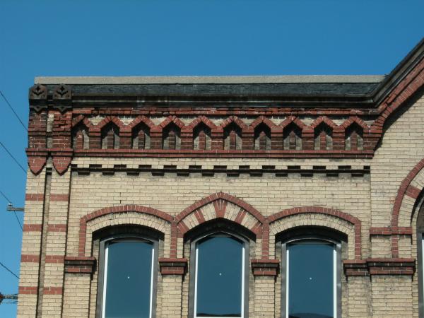 Additional Information: | Photo code #2: 75BR-8/13. Totally altered 1st floor with concrete anels framing modern, display windows. Elaborated, corbelled brick cornice. Gothic arched window surround of centrally placed window on the second floor at the main facade has a carved wood plaque filling the space above the flat arched window head. |