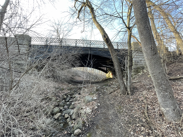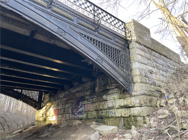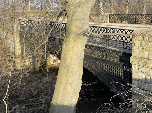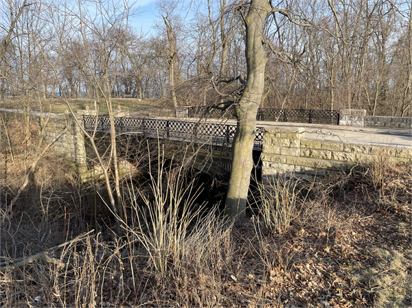 Additional Information: | 2011- Single span, steel arch bridge with a limestone foundation. The bridge has steel stringers supporting a concrete deck. The bridge has U-shaped limestone abutments and a decorative steel railing with floral designs. The bridge was closed to vehicular traffic in 1964 according to "A History Walk Through Lake Park." steel beam or plate girder bridge |