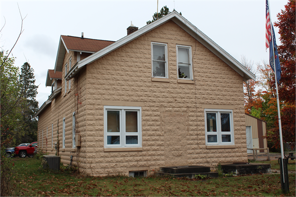 This building was constructed between 1935 and 1936 as the new Crandon Ranger Station of the Wisconsin Conservation Commission (known today as the Wisconsin Department of Natural Resources). It replaced the former station, which was described as an “old tumbled down barn.” The construction of the station was completed with Works Progress Administration funding; the total cost of which was to be $9,361, with $8,192 being federal funding. Twenty workers were to be used on the job, ninety percent of which were to be relief workers. By early November 1935, work on the structure had started, a local newspaper citing that half of the concrete blocks to be used had been made. Although anticipated for completion by Spring of 1936, it was not completed until November of that year. Three years later, plans were made for the construction of a combination weather and fire tower, east of the ranger station. It was to be completed with additional WPA funding; however, that project never came to fruition.