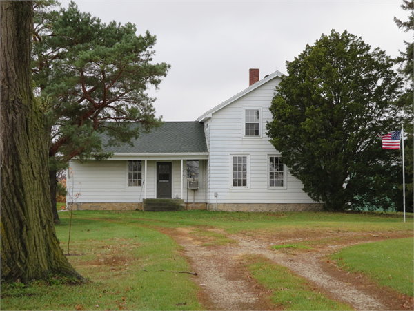 Additional Information: | The vernacular farmhouse with Greek Revival influence has a two story gable and one story intersecting wing, and was built circa 1900-1910s. Both the two story section and the one story eave have stone foundations, but each has a different type of stone, suggesting different construction dates. The eave of the one story wing extends to create a shallow porch at the north main entrance, with two round posts at the top of poured concrete steps. Both sections have asphalt shingle roofing, aluminum siding, and 12-light windows at the first floor. The two story section also has narrow windows at both the attic and basement level, and a double-hung window at the second floor, as well as a central brick chimney. There is a one story gable garage addition with a roll-up door at the rear, and a farm bell is mounted on the garage’s ridge. Additional WHS AHI records for this location are #229705, 229708, 229710, 229720, and 229721. |