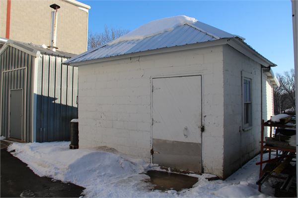 | Additional Information: | 2021: A small c.1915 shed with painted concrete block siding and a hip metal roof. A wood door with a metal kickplate is located on the front (north) facade. Windows are wood hung sash. A minor c.1970 addition with a shed roof extends from the rear (south) elevation. |
