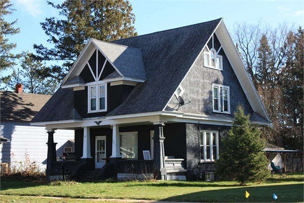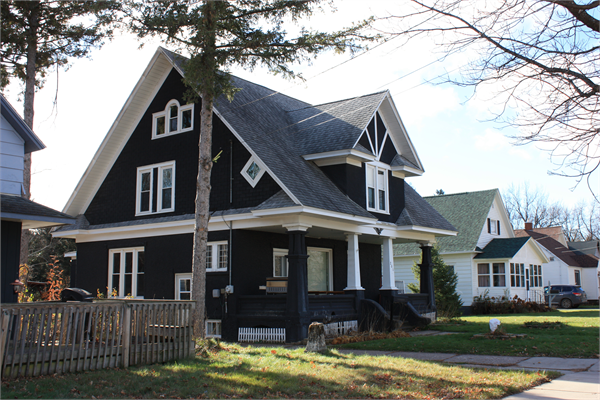 | Additional Information: | 2023: This two and one-half story single-family residence is a large, Craftsman style bungalow constructed circa 1920. It is rectangular in plan with a broad side-gabled roof that features a large front-gabled dormer centered in the north roof slope. The exposed foundation and first story exterior are covered in a highly texture stucco while the second story gable ends are covered in a slightly less textured stucco. The roof is covered in asphalt shingles; the wide eaves have been closed or reclad with aluminum soffit and fascia. The bottom of the gable ends are enclosed with a pent roof, and all gable ends feature pent eave returns. The principal elevation faces north toward 10th Avenue. A full-width open-air porch is recessed below the broad sweeping side-gabled roof. It is supported on tapered columns spanned by paneled knee walls. Poured concrete stairs lined by curvilinear concrete walls provide access to the porch. Below the porch, the primary entrance is offset to the west with a large single-pane in the center and a one-over-one window to the west. The centered dormer features paired one-over-one windows and diagonal stickwork. The side-facing gable ends feature Palladian windows in the third half story. Paired one-over-one windows divided by wide, stucco mullions and diamond single-pane windows are in the second story of each gable end. Banks of three one-over-one windows are in the first-story side elevations. The windows throughout have been with one-over-one vinyl sash windows. |