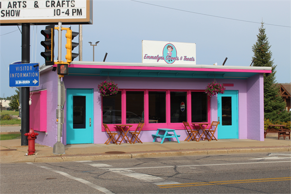 | Additional Information: | 2024: Completed in August 1948, this served as the first purpose-built building to house the Eagle River Municipal Information Bureau. Prior to its construction, the municipally run bureau was located in a variety of buildings, most recently in the former American Legion Memorial building (present-day and significantly remodeled, Riverstone Brewing Company) at 219 North Railroad Street (north of the subject historic district). When completed, the 1948 building included an interior finished in knotty pine that included both men’s and women’s restrooms and a lounge with a booth that provided free information regarding area resort and other accommodations. Also located in the building was a small police office. In 1959, remodeling efforts including moving the public telephone booth outside, the addition of cabinets and a new tile floor. The building housed the information bureau until moving into the former railroad depot in the 1980s. The building is currently home to Emmalyn’s Sweets & Treats, which opened in the building in 2024. It was at that time the building was painted hot pink, purple and turquoise. |