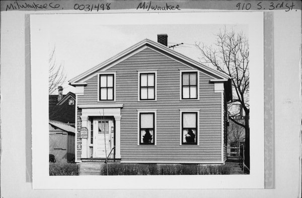 | Additional Information: | A 'site file' exists for this property. It contains additional information such as correspondence, newspaper clippings, or historical information. It is a public record and may be viewed in person at the Wisconsin Historical Society, State Historic Preservation Office. This house, built in 1854 [A], is one of the oldest known standing frame houses in the City. It originally fronted Walker Street, but was moved to the back of its lot and turned to face South 3rd Street. A Guide to Historic Walker's Point, 1978: "A native of Fort Ann, New York, Howard arrived in Milwaukee in 1836. Having spent his early life on the Erie Canal, he worked in Milwaukee as a laborer on various cargo ships and died in 1881. In 1884, the property passed into the hands of the Lindemanns, a German immigrant family that had settled in Milwaukee in 1863. The building, which rests on a brick foundation, is a one-and-a-half frame Greek Revival house. The entrance has sidelights and carefully scaled pilasters and entabulature." |