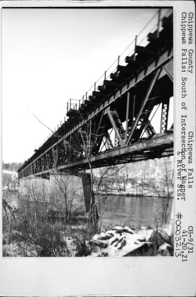 Additional Information: | This five-span railroad bridge was constructed by the Minneapolis, St. Paul, and Sault Ste. Marie in 1918. It is one of four railroad bridges spanning the Chippewa River at this time. Immediately after the construction of this bridge, the "Soo" Railroad Company razed one of its other railroad bridges. This bridge was built to provide convenient access to the new "Soo" Depot which was removed from downtown Chippewa Falls to the south side on Canal Street in 1918. This bridge is of significant local historical interest because it represents the period during the late 19th and early 20th century in which Chippewa Falls' railroad activity was at its peak. It is one of only two railroad bridges surviving from this period. As an important historic-architectural representative of the railroad era, the railway bridge now being used by the Soo Line Railroad needs further research in order to determine its architectural significance. |