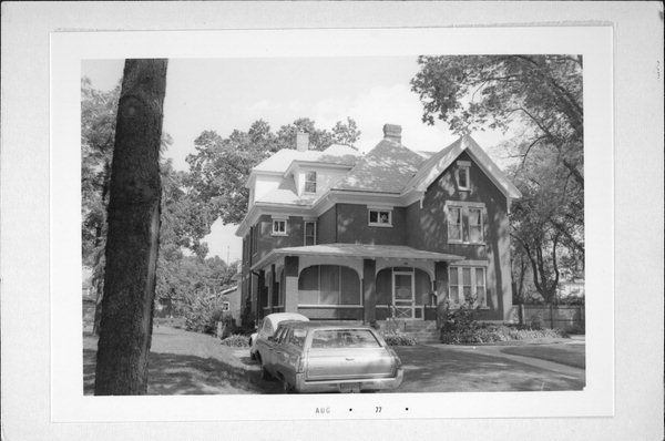 | Additional Information: | Intersecting hip roofs with front gabled extension; bargeboards; south side cross gables with shingles and stick style ornament; multiple roof dormers; stone window lintels and sills; two sided porch with hipped roof, arched openings and dentil blocks uner the eaves. Narrow rectangular bay on south side with 2nd story open balustraded porch. Good example of less elaborate Queen Anne. House rennovated and sandblasted exterior. |
