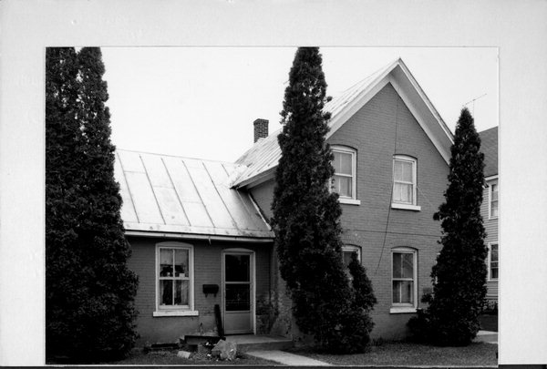 | Additional Information: | Segmental arched windows with two over two lights. 2016- "This two-story, gable-ell residence was built c.1880. The walls are clad in brick veneer. The gable roof is covered in metal sheathing and has historic boxed soffits. The front (north) facade is characterized by the simple front gable with a side entry and replacement door. A rectangular addition clad in vinyl siding sits on the facade in front of the ell. Windows are predominately two-over-two replacement sash with segmental arches and stone sills." -"Market St, S 14th St-S 19th St", WisDOT #5991-05-18, Prepared by Mead & Hunt, Inc. (2016). "Rev. J. C. Sherwin [was the] first Presbyterian minister. [This building was] moved from state/5th to 1728 Market and veneered [with] brick. Once occupied by Col. Theodore Rodolf, prominent early settler." Notes by Joan Rausch 2017 UPDATE - HOUSE APPEARS SUBSTANTIALLY AS IT DID WHEN LAST SURVEYED IN 2016. |
