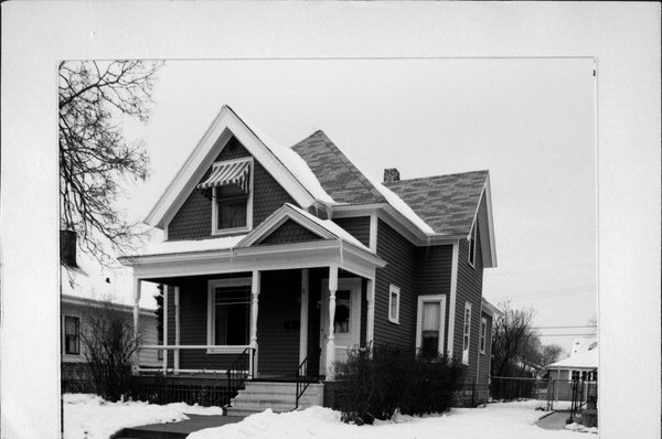 | Additional Information: | Gable roofed two story rectangular bay on the east side and similar bay with bracket ornamented chamfered lower story on the west side; gabled two story front gable roofed bya. Open front porch with pediment over the entrance and turned posts; stained glass rear gable roofed adition with side porch. 2017 UPDATE - PREVIOUSLY CLAD IN CLAPBOARD, THIS HOUSE IS NOW CLAD IN GREEN VINYL SIDING, LOSS OF INTEGRITY |