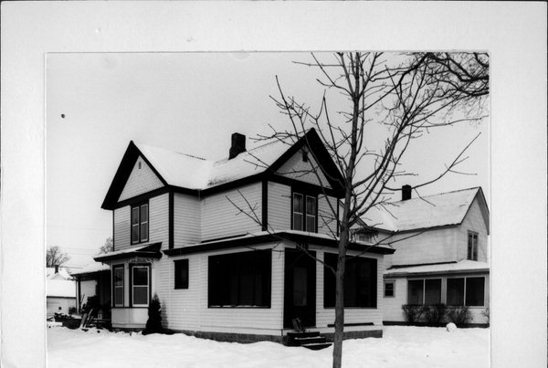 | Additional Information: | Multi-gable roofed two-story house with two-story gable roofed projecting south bay with three-sided bay window with cut-out bracket ornament, stained glass and two-sided screened entrance porch. Gable roofed rear extension; pedimented gable ends. 2016 UPDATE - THE LOWER HALF OF THE HOUSE IS NOW CLAD WITH VINYL SIDING, AND THE UPPER HALF, AS WELL AS SOME OTHER LOWER WALLS, ARE COVERED WITH STUCCO. THE FRONT PORCH IS NOW SMALLER. LOSS OF INTEGRITY. |