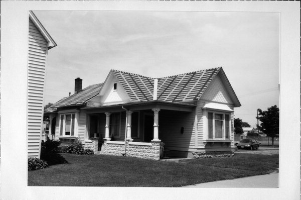 | Additional Information: | Vernacular clapboard house with rectangular gabled bay on the north side and three-sided gabled bay on the south side, decorative overlayed shingles in gables, and front open porch with composite column on concrete porch rail, rectangular front bay window with bracket supports, leaded glass, and rear extension with gable roof, rectangular bay window and side porch. 1996- "Rising from a rock-faced concrete block foundation, this one story, gabled, Victorian residence is sheathed with clapboard siding. Bracketed, rectangular bay windows with leaded glass panes project from both the south and east walls, and the gable peaks carry shingle work. Remaining windows are largely non-descript, double-hung examples. A flat roof, open porch extends from the south wall and has Corinthian-like column supports resting on a molded concrete block balustrade/rail. A rear screen porch is located along the south facade and has a wooden balustrade and some additional porch work." - "La Crosse North/South Transportation Corridor", WisDOT ID #5991-04-00, Prepared by Heritage Research, Ltd. (1996). 2016 UPDATE - THIS HOUSE APPEARS TO BE INTACT, WITH CLAPBOARD SIDING, DECORATIVE CONCRETE POSTS, CONCRETE BLOCK PORCH. INTEGRITY GOOD/INTACT. |