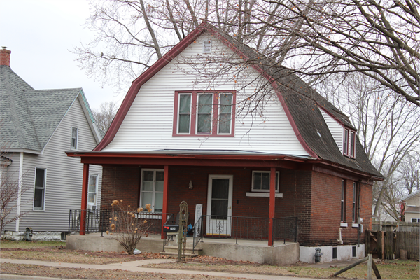 | Additional Information: | Gambrel roofed house with decorative shingles in gambrel end and on the two side shed dormers and rectangular bay window, unusual roof tiles, and open full-length porch supported by brick piers with brick rails, and leaded glass. Dutch Colonial and Craftsman influences. 2024: Not resurveyed for the STH 35 Corridor Study. House has replacement windows, replacement siding, and altered porch. |