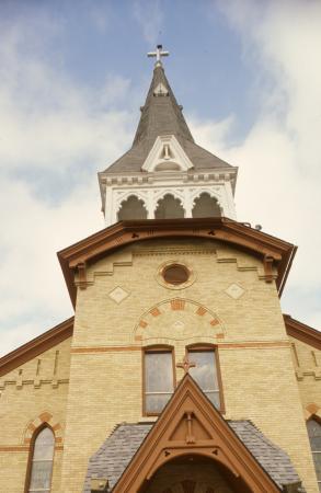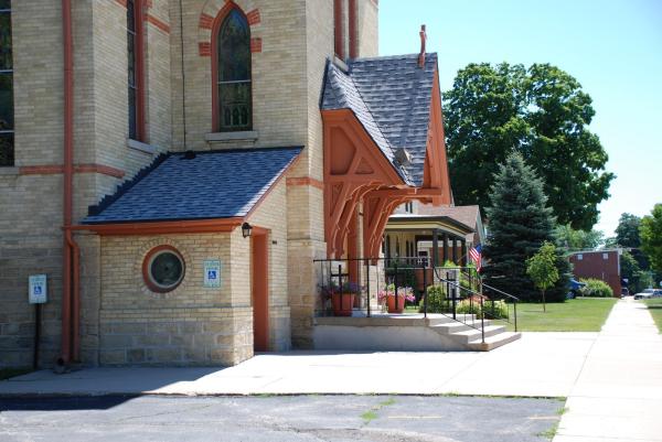 | Additional Information: | A 'site file' (Zion Evangelical Lutheran Church and Parsonage) exists for this property. It contains additional information such as correspondence, newspaper clippings, or historical information. It is a public record and may be viewed in person at the Wisconsin Historical Society, Division of Historic Preservation-Public History. POINTED ARCHED WINDOWS, POLYCHROME BRICKWORK, OPEN BELFRY IN STEEPLE W/CINQUEFOIL ARCHES, GABLED ROOF OVER ENTRY W/KING POST TRUSS AND BARGE BOARDS. THE BELL FOR THE CHURCH WAS CAST FROM 5 CANNONS CAPTURED DURING THE FRANCO-PRUSSIAN WAR AND GIVEN TO THE CHURCH BY KAISER WILHELM, EMPEROR OF GERMANY. IT WAS CAST IN BALTIMORE BY A GERMAN MASTER AND WEIGHS 1,600 POUNDS. A LATIN INSCRIPTION ON IT READS "I CALL THE LIVING, I MOURN THE DEAD, I BREAK THE LIGHTENING!". THE ADDITION AT THE REAR OF THE BUILDING WAS BUILT IN 1887. IN 1896, THE STEEPLE WAS STRUCK BY LIGHTENING AND REBUILT. Exceptionally fine High Victorian Gothic style polychromatic brick church designed by Milwaukee architect Edward Townsend Mix, and built in 1878 with Richard D. Vanaken as carpentry contractor and Henry Bolte as masonry contractor. In 1887, an increase in the size of the church neccessitated the expansion of the church, which consisted of a 40-foot x 50-foot addition to the rear of the nave in the same style. "This church building is a fine example of the Victorian Gothic style. The most distinguishing feature of this style is the polychromatic exterior finish. Bricks of differing colors create decorative bands and highlight arches on the building exterior. The wall surface is further decorated with masonry corbelling at the eave line and a rusticated stone foundation. The prominent square belfrey features an arcade of three ornamented trefoil arches on each side. The bell for Zion Church was cast for five cannons captured during the Franco-Prussian War and given to the church by Kaiser Wilhelm, Emperor of Germany. The bell was cast in Baltimore by a German master and weighs 1,600 pounds. On its surface is the Latin inscription (translated) "I call the living, I mourn the dead, I break the lightening!" The addition at the rear of the building was built in 1887. In 1896 the steeple was struck by lightening and rebuilt." Columbus Historic Architecture Tours, undated. |
