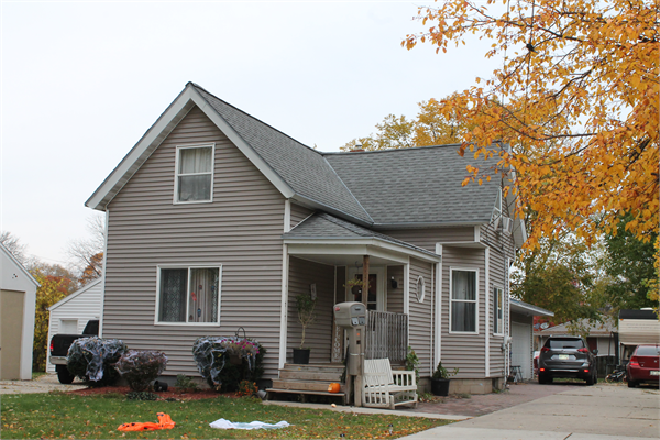 | Additional Information: | East and west facing ells have cutaway first floors with fine corner brackets above. Diamond shape windows on the east facade lights the entrance vestibule. Upper gable ends all have octagonal pattern wood shingle siding. Garage attached to house on rear is a modern addition. |