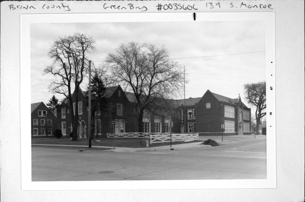 | Additional Information: | A 'site file' exists for this property. It contains additional information such as correspondence, newspaper clippings, or historical information. It is a public record and may be viewed in person at the Wisconsin Historical Society, Division of Historic Preservation-Public History. Excellent design having a long front facing wing housing an auditorium which is lit by large two story tall Tudor arch windows along its north and south facing facades, and which are framed by simple buttresses with cut stone caps. The elongated auditorium wing is the stem of this T Plan composition and its top is the school wing with classrooms arranged on two floors. This wing has an H Plan whose side salients face north and south and whose windows are all large flat arched 6/6 lite double hung type used in groups. All windows of this type, whether occurring in groups, pairs, or singly, have fine cut stone surrounds with rusticated architraves. The front facing facade of the auditorium wing has a glable roofed ell facing the front containing the triple entrance doors, each with a large pointed arch transom lite above and all three having a cut stone surround with rusticated architraves. The south facing facade of the school wing is symmetrical and is bisected by another fine slightly proejcting gabled entrance ell. The Francis Xavier School building is an excellent example of an essentially Tudor Revival design whose Neo Gothic style entrance doors on Monroe Avenue echo both its church affiliations and historic precedent as wel. The design is notable for the excellent stone detailing throughout which contrasts splendidly with the brick walls of the building. Together with the other buildings in the Cathedral District, the school is an impressive addition to one of Green Bay's most important institutions. The significance is heightened by its highly intact and well maintained state of preservation. Original multi-light windows replaced since last surveyed in 1985. |