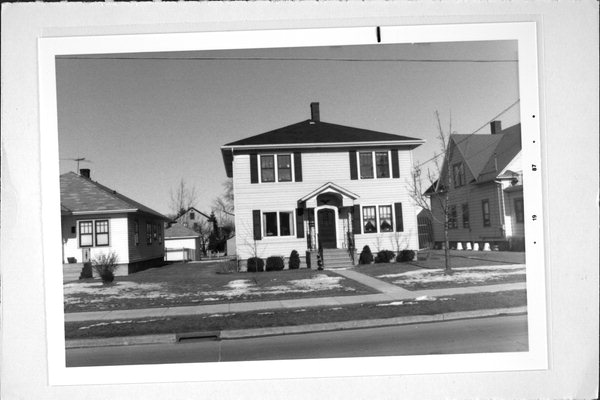 | Additional Information: | Formerly Willow Street (1957 Sanborn-Perris Map). Front entrance porch roof supported by modern wrought iron. Resurveyed April 2016: changes include the replacement of original 3-over-1 windows with modern 1-over-1 windows and the replacement of the ogee arched front door with a modern rectangular door. This 2-story American Foursquare duplex was constructed in 1935. It is rectangular in plan with a concrete block foundation, clapboard walls, and an asphalt-shingled hipped roof. The front elevation faces south and is symmetrical in plan with a central front door that is accessed by a concrete stoop with modern wrought iron rails on each side. A front-gabled roof projection with modern wrought iron supports shelters the front door. The door is a modern replacement of the original. On the west side of the doorway is a pair of windows, one of which is a single-pane casement while the other is a 1-over-1 double-hung. East of the doorway is a pair of 1-over-1 windows. Window placement is mirrored at the second story with two pairs of 1-over-1 windows. All windows in the faced have decorative shutters. Green Bay Intensive Survey Phases 2, 3 & 4 |