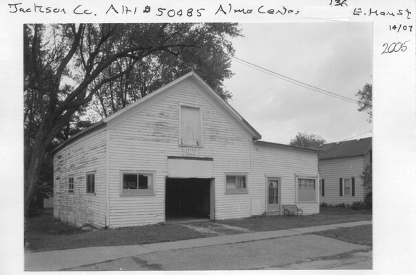 Additional Information: | 2005- The original Front Gable portion of this building was built as a blacksmith shop by William Walters in 1858 or 1859 an d its (purportedly) the oldest surviving building in Alma Center. The building continued to function as a blacksmith shop until at least the early 1900s, when Nathan Merrill also has his shop in this building. 2024 - One-and-one-half story, front gable with a one story lean-to, metal roof, metal siding at front, vinyl siding at side, vinyl one-over-one and sliding windows, rolltop door. William Walters was a white blacksmith from Canada. His successor Nathan Merril was a white blacksmith from Wisconsin. |