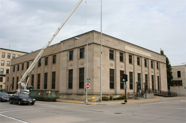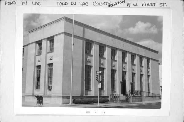 Additional Information: | Photo code #2: 74FD-31/24,25 This two-story building used classical motifs in a modern manner. It has a facing of limestone on the front and part of the side walls. A narrow cornice of dentils decorates the top of the stone portion of the building. Fluted pilasters separate window bands on the stone portion of the builidng, while brick pilasters separate window bands on the side walls. Low relief sculptures decorate the spandrels of the stone portions of the building. Windows have been replaced with modern tinted units and openings have been partially filled in. Two fine Art Deco light fixtures flank the entrance. It takes classical forms such as the fluted pilasters, the cornice with dentils, and the decorated spandrels and executes them in a modern, streamlined manner, a hallmark of the Art Deco style. This building is in fine condition with only the partially enclosed windows detracting from its integrity. This building housed the U.S. Post Office in Fond du Lac from 1937 to recent years, when a new post office building was constructed nearby. This building is historically significant because of its association with the U.S. Post Office, the best representative of the federal government in the community. While local, county, and sometimes state governmental buildings are common in medium-sized communities such as Fond du Lac, the federal government was primarily represented by the post office. This project was also a depression-era project, one of the make-work projects the federal government engaged in to provide employment during the Great Depression of the 1930s. Previously surveyed in 1988. The P.B. Haber Building housed not only the printing establishment of the same name, but was also the printer of The Fond du Lac Commonwealth Reporter, which was established in 1926 when The Daily Commonwealth (which had also been published at the Haber establishment) and The Reporter merged. Also, in a third-floor studio of the building the radio station KFIZ was born in 1923. As cited in the Cartwright survey, postal service began in Fond du Lac with its first settler, Colwert Pier who received the first mail delivery from Green Bay in 1838 and maintained service out of his own home. The location of the post office moved as convenient for the current postmaster, after which a permanent post office building was erected in 1862 (or 1869) at 66 S. Macy Street, which also included office space, as well as a meeting hall. In 1906, a new post office was complete at 19 W. 1st Street; that building was razed in favor of the existing structure at the same location. Standing two stories high, this building is faced with stone along its 1st Street elevation, while its rear is sheathed with brick. Although identified as Art Deco in the earlier survey, the more appropriate name for the style is "Stripped Classicism" which was popular for federal buildings. Despite the new signage that runs along the top of the building and new windows have been installed in the significantly larger openings, the openings themselves have not been altered and the modest stone detailing in the panels between the windows remains. |