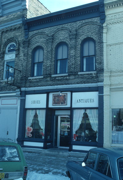 | Additional Information: | An architecturally significant example of the commercial Italianate style in Green County, this two-story cream brick building is modest in scale but exuberant in detail. A bracketed and denticulated cast-iron cornice dominates the facade, projecting above the second story. Brick pilasters, crowned with brick capitals and connected by corbelled brick arches, divide the facade into three bays into which are set round headed two-over-two sash windows. The first floor still retains the original cast-iron posts which support the large plate glass windows and the transoms above. Built by 1873, 912 West Exchange housed a variety of business establishments in the late 19th and early 20th centuries, including a saloon, a post office, and a billiards hall. Purchased by the laube Brothers in 1878 (perhaps as an adition to their Opera House next door) it has remained in the Laube or the Gombar families since that date. |