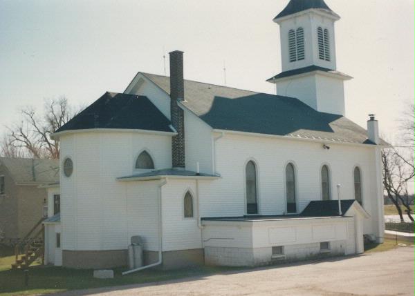 Additional Information: | A 'site file' exists for this property. It contains additional information such as correspondence, newspaper clippings, or historical information. It is a public record and may be viewed in person at the State Historical Society, Division of Historic Preservation. Resurveyed in 2023 by UWM-CRM as part of a CTH A reconstruction project. St. John’s Evangelical and Reform Church was built in 1888. The church is rectangular in plan, with a front tower and a polygonal chancel at the east (rear). The church has a fieldstone foundation, is clad in vinyl siding, and has a modern asphalt shingle roof with aluminum eaves. The front tower contains an arched recessed entry with modern steel entry doors. A pair of round-arched stained glass windows and a single stained glass rose window are located above the front doors. The lower portion of the tower is capped with a pent roof. The upper belfry portion of the tower contains paired round arched openings with louvers The belfry is capped with a steeply-pitched roof with flared eaves. The uppermost eaves retain their historic scrollcut brackets. Four tall round-arched stained glass windows are located in each of the side elevations. Small gabled entry additions are located in both the north and south elevations, and an additional flat-roofed addition is located along the north side. The seven-sided polygonal chancel contains several pointed arch windows as well as a single round rose window. The chancel is flanked by low hip-roofed sacristies. The building contains several modern entry modifications, including a concrete ramp at the front and a pressure-treated wood staircase on the rear. Photos of the interior from 1994 suggest that at that time the church retained its original modest Gothic Revival-style interiors, with painted plaster walls, pressed metal roof, and decorative wood altar and reredos. |