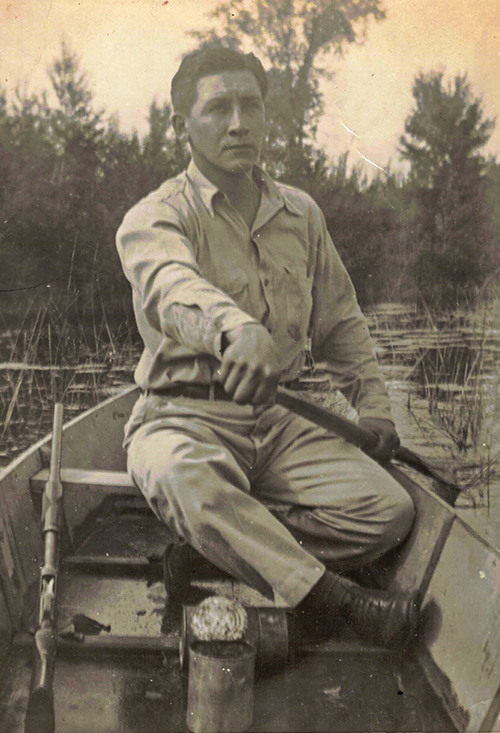 "The Hunter" Jerome, Likely Autum 1942, Bad River Reservation, likely Kakagon sloughs. - Courtesy of Liz Arbuckle