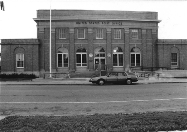 | Antigo Post Office 501 Clermont Avenue, Antigo, Langlade County Architect: James A. Wetmore Date of Construction: 1916 In 1879, the first post office in Antigo opened as a part of the postmaster's general store. Over the years, the post office had many temporary locations. Finally in 1911, a site was purchased for a new, permanent post office. In 1916, the first federally owned and built post office opened in Antigo. It cost $60,000 to build. The Antigo Post Office is an excellent example of a Neo-Classical Revival style building designed for a small city by the federal Supervising Architect's Office. This style is visible in the building's two-story pilasters and large cornice. Other details reflect Beaux-Arts classicism, seen in the use of large arched openings and the embellishment of the frieze. The post office is an imposing building in Antigo. It is taller than nearby commercial buildings, and the Neo-Classical design helps to portray a solid federal presence in the city. The Antigo Post Office was constructed during a transitional period between individualized plans and the more standardized plans for post office facilities. The McAdoo classification system, implemented in 1915, specified the materials and the level of decoration appropriate for each post office. Since the land for the Antigo Post Office was purchased before this time, it is reasonable that the plans for the building were also completed before the advent of the McAdoo system, explaining the more elaborate styling and detailing. The Antigo Post Office is open during normal business hours. |