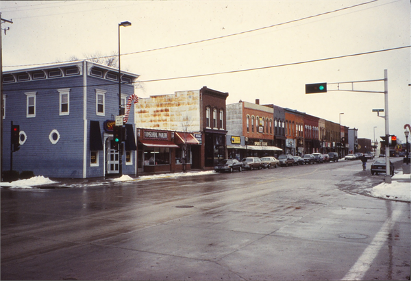 | Water Street Historic District Water Street roughly between Fourth and Fifth avenues Eau Claire, Eau Claire County Dates of Construction of contributing buildings: 1882-1885 The Water Street Historic District is a distinct, compact commercial area located along the north side of the Chippewa River directly across from the main campus of the University of Wisconsin - Eau Claire. Approximately one block in length, the District developed around a steamboat landing in the 1850s and originally included a working-class mix of retail and trade businesses. Often referred to as Eau Claire's "other downtown," this district is situated about one mile downstream from the central business zone in downtown Eau Claire. Today, the economic vitality of the Water Street district is due primarily to the proximity of the university community. The hallmark of the Water Street Historic District is the High Victorian Gothic style Pioneer Block (1882) at 401-407 Water Street. This ornate, two-story, red brick commercial block of four contiguous storefronts anchors the east end of the District and is the most recognizable of its buildings. Currently, the Water Street Historic District features a mix of specialty retail and service shops and contemporary dining and beverage establishments.