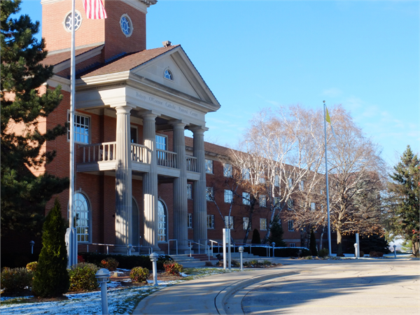 | Holy Name Seminary 702 High Point Road Madison, Dane County, Wisconsin Date of Construction: 1964 Architects: Krueger, Kraft and Associates Holy Name Seminary is an excellent high-style example of a large-scale educational building designed in the Neo-Colonial style of architecture in Wisconsin. This style was a continuation of the Colonial Revival style that emerged in the United States after World War II and remained popular until the early 1980s. Madison-based architects Krueger, Kraft and Associates designed the exterior of the building in the Neo-Colonial style to convey a sense of tradition and a visual connection with the permanence, integrity, and reliability of America’s oldest and most venerable educational institutions. The building’s red brick exterior, symmetrical massing and fenestration patterns, rectilinear floor plan, prominent projecting entry porticos, and dentiled cornice are all hallmarks of the style. The building’s stately Georgian exterior detailing, large metal windows, unusual complex massing and no-nonsense institutional interior spaces exemplify the free interpretation of the colonial precedents and mixing of traditional and modern elements that characterized the Neo-Colonial style in the 1950s and 1960s. Holy Name Seminary retains a high level of exterior integrity with no non-historic additions or major alterations, and the interior also retains sufficient integrity. This property is private. Please respect the rights and privacy of the owners. |