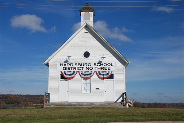 Harrisburg School E7646 County Road B, Troy, Sauk County Date of Construction: 1892 The Harrisburg School, constructed in 1892, is a one-room schoolhouse which served Troy Township until it was closed in 1955 during the era of school consolidation in Wisconsin. The Harrisburg School retains the design characteristics of one-room schools including the simple gable form, wood clapboards and shingles, and a bell tower on the roof. One-room schoolhouses are becoming increasingly rare but intact examples such as this one preserve the history of education in rural communities. The school is owned by the Harrisburg-Troy Historical Society and is open to the public in the summer months. |