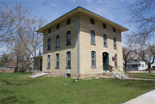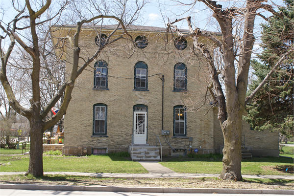 In 1867, Ezra Goodrich and his wife, Elizabeth, built this house as their family home in Milton. Like his father, Joseph Goodrich, who built the innovative grout-constructed Milton House, Ezra Goodrich designed his Italianate home with details that were different from other homes of this style in Milton. The house was designed with a rectangular form popular to the style, but lacked the typical roofline of bracketed cornice and frieze. Rather, Goodrich accented the cornice of his house with large oculus windows, a detail not seen anywhere else in the community. The interior of the house was also unusual, with a distinctive four-room plan that repeated on each of the three stories of the house, creating four large elegant family rooms and eight large bedrooms.