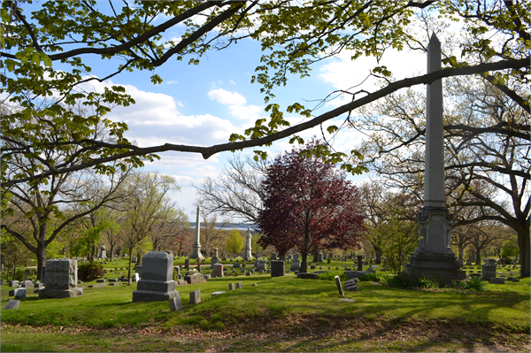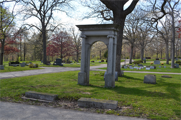Oak Hill Cemetery 1101 Cemetery Road, Lake Geneva, Walworth County Established: 1880 The Oak Hill Cemetery is located on its original forty rolling acres on the north side of the city of Lake Geneva and was established in 1880. Oak Hill Cemetery represents the Rural Cemetery Movement that became fashionable in the United States between the early 1830s and about 1900. In contrast to earlier urban churchyards, the so-called “rural” cemeteries constructed as part of this movement were characterized by locations distinctly outside of the cities they were meant to serve, as well as their naturalistic landscaping and secular orientation. The property is characterized by its network of meandering drives and walkways, a perimeter of mature woodland with numerous trees and other plantings dotted throughout the landscape, and rolling topography that provides a scenic vista of Geneva Lake at its highest point. Spread throughout this picturesque setting is a wide variety of grave markers and monuments that range from modest stone slabs to grand obelisks and mausoleums. Oak Hill Cemetery is also notable as the burial place of many prominent Chicagoans who maintained vast summer estates in Lake Geneva during the late nineteenth and early twentieth centuries. As such, the cemetery is both a remarkable local example of the Rural Cemetery Movement as well as an important addition to the cultural heritage of the city of Lake Geneva. |