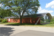 | Kohl’s Food Store was constructed in 1968 following a design by the Milwaukee firm of Rasche, Schroeder, Spransy & Associates in the City of Monona, Dane County, Wisconsin. The building is an excellent representative of mid-century Contemporary architecture that utilizes glue-laminated arches to achieve its distinctive arched roof without the use of interior columns or other vertical supports. The building represents the signature design employed by Kohl’s Food Stores throughout the 1950s and 1960s and is one of, if not the best, remaining examples of the company’s standardized supermarket design remaining in the state. In addition, the building is one of the most visible and distinctive examples of glue-laminated arch construction in the City of Monona. In addition to its signature arched roof, the building is characterized by its asymmetrical façade; its front window-wall with a continuous, widely overhanging eave; its prominent glue-laminated front arch that extends beyond the roofline to ground anchors on each side; its projecting flat roof over the front entrance; and its interior floor plan featuring a large, open sales floor. The building operated as a supermarket until ownership changes and the construction of additional supermarkets in the area led to its closure in 1985. In 2014, the building was purchased by Habitat for Humanity of Dane County; it currently serves as one of two Madison area Habitat ReStores. |