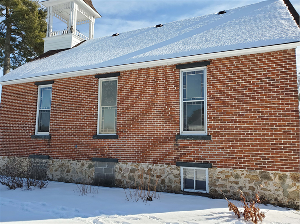 The Millston Union Church is an important illustration of a small, early- twentieth-century, rural church building with elements of the Late Gothic Revival style. This municipal building, literally “the town church”, was Millston’s only church building since its construction until 1984. Additionally, the building is significant for its association with the community’s religious needs. When constructed in 1904, religious ornaments were noticeably absent from this building. This remained the case until 1960 when second-hand items, including an altar and pews, were purchased. In 1968 a lighted cross was installed atop the steeple, replacing a secular weathervane. Use of the Millston Union Church building has been sporadic over the years, but, just as it was in 1904, it continues to be owned by the town, administered by a board of trustees, and available for use by any faith or denomination. |