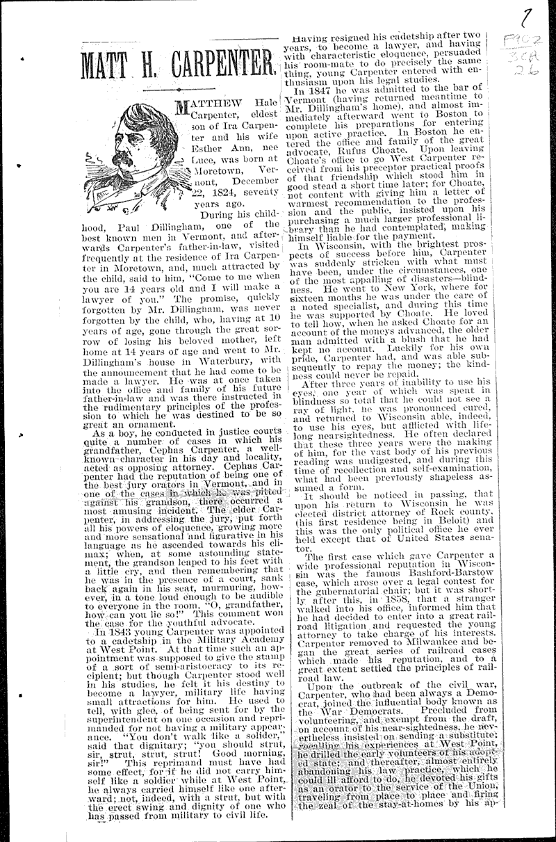 | Carpenter, Carpenter Matthew Hale 1824 - 1881 |