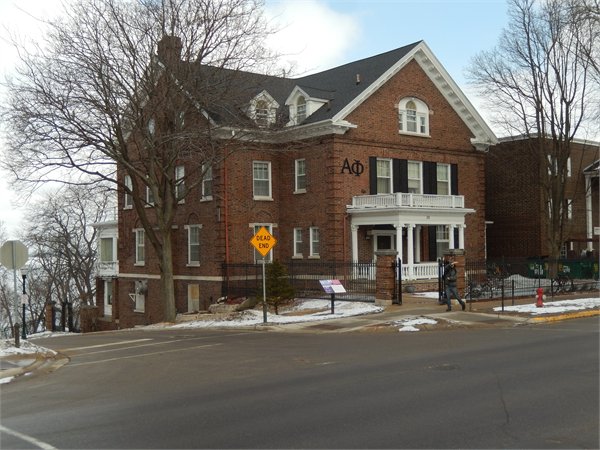 | Additional Information: | Madison Historic Landmark: 4/25/1983 "The history of this house illustrates the transition of many large homes in the district from single-family residences to student housing. Frank G. Brown was a businessman and financier in 1905. he managed his father's extensive real estate and lending concerns and helped found the French Battery Company, now Ray-O-Vac, one of Madison's most successful industries. In 1920, Frank Brown died, and his wife continued to live in the house until 1927. In that year, Alpha Phi sorority moved into the house and have occupied it ever since. This house is an early version of the colonial revival style. Its main features are an unusual front intersecting gable roofline, a cornice with dentils, and returned eaves. The gracious entry porch is decorated with round columns and Roman Ionic capitals and a cornice topped by a balustrade. At the rear of the house is a large porch overlooking the back lot which slopes down to Lake Mendota. At the foot of N. Carroll Street behind this house is the site of the old municipal boathouse. Frank Lloyd Wright, then an unknown architect in Chicago, designed the boathouse in 1893. Wright's design was the winner of a competition sponsored by the Madison Improvement Association. The twin-towered boathouse was Wright's first design in Madison an was, unfortunately, torn down in 1928." City of Madison, The Langdon Street Historic District: A Walking Tour, 1986. Research from 2021: The architects are listed as Law, Law & Potter which implies they were responsible for the original design in 1905. The firm did not yet exist at that time. James Law established his practice in 1913 and his brother Edward joined him in 1917 and the firm became known as Law & Law. The firm was renamed Law, Law & Potter when Ellis Potter became a full partner in 1925. It's possible that Law, Law & Potter did alterations in 1927, though the project is not listed among the firm's work in the Madison Intensive Survey: Master Architects document compiled in 2006 by Katherine Rankin and Timothy Heggland. In 1927 Alphi Phi Sorority was issued a building permit for $2,800 for interior alterations (Wisconsin State Journal, 23 Dec 1927). No architect is listed, though there may be something in the city's files. Madison's landmark nomination which dates from 1983, credits no architect for the Frank & Mary Brown House. |