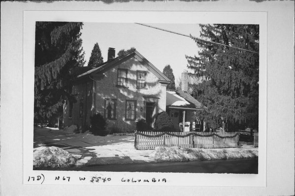 Bibliographic References: | ZIMMERMANN, RUSSELL "THE HERITAGE GUIDEBOOK" (HERITAGE BANKS 1976), p. 203. 1923 City Directory. 1915 plat map. see also N67 W5524 Columbia Road. |
