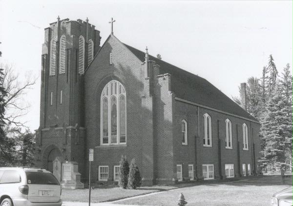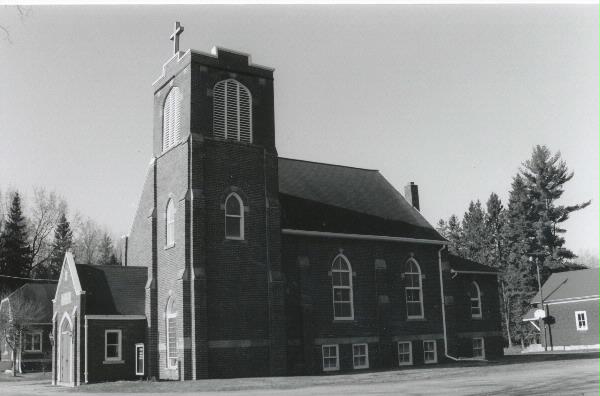 | Additional Information: | A 'site file' exists for this property. It contains additional information such as correspondence, newspaper clippings, or historical information. It is a public record and may be viewed in person at the Wisconsin Historical Society, Division of Historic Preservation. 2005- Immediately to the right (north) of the window is a three-story bell tower the corners of which are highlighted by three-tired buttresses. The upper level of the tower, which has simple corners and no buttresses, is characterized by a large arched opening in each of its four sides with what appear to be louvered wooden screens. Immediately west of the church is a simple 1-story gabled structure that was likely a school building (See AHI #134259). Also on the property is a modest brick bungalow that likely served as a rectory for the church (see AHI #134260). |