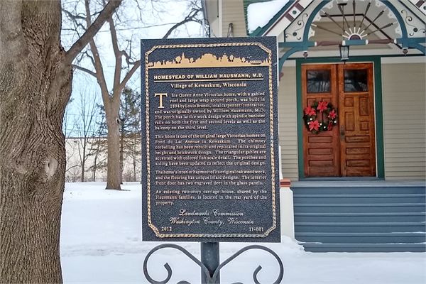 | Bibliographic References: | ZIMMERMANN, RUSSELL "THE HERITAGE GUIDEBOOK" (HERITAGE BANKS 1976). Washington County History and Driving Tours presented by the Washington County Landmarks Commission, 1999. “Dr. N.E. Hausmann Dies at Kewaskum Home Monday,” The Sheboygan Press, September 14, 1943; State Medical Society of Wisconsin, Transactions of the State Medical Society of Wisconsin for the Year (Madison: State Journal Printing Company, 1902), 417. |