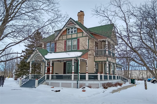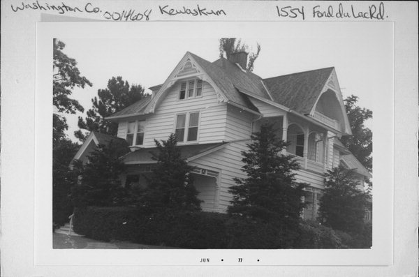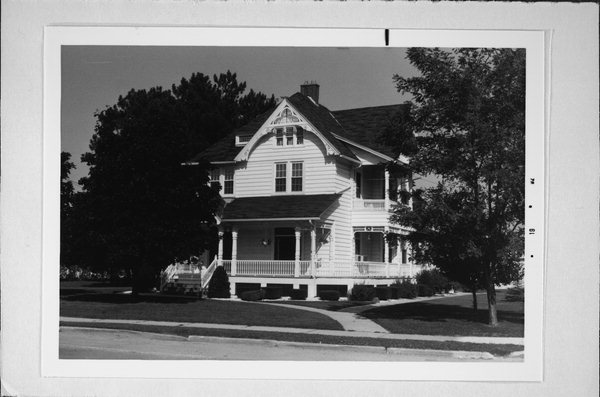 | Additional Information: | ELABORATE SPINDLEWORK TRUSSES AND CARVED BARGEBOARDS. ALL PORCHES W/SPINDLEWORK SUNBURST MOTIF. SPINDLEWORK IN GABLET OVER ENTRANCE. 2019 - appearance altered This two-and-one-half story Queen Anne-style house was constructed in 1894 for Dr. William Hausmann. It has an irregular form, clapboard siding, a hipped roof with lower cross gables, and elaborate decorative detailing characteristic of the Queen Anne style. The asymmetrical façade features a wraparound porch and dominant front-facing gable. The front entrance is located on the north side of the façade opposite a large fixed picture window. The porch’s pent roof is supported by turned wood posts with decorative detailing. Above the front steps, the porch roof forms a front gable, which features spindlework in the shape of a sunburst. Additional spindlework is found in the gables on the façade and south elevation, which also have a mix of cladding materials. On the second story of the façade are two pairs of six-over-six replacement sash windows. Similar replacement windows are also on the secondary elevations. The porch on the south elevation has a second story beneath the side gable. The house was built for Dr. William Hasumann in 1894 and is an intact example of an early Queen Anne home in Kewaskum. Dr. Hausmann died in 1902, but was survived by multiple sons, who also appeared to excel in the medical field as prominent physicians or dentists. Hausmann was born in 1855 in Buffalo, New York, to German parents. Eventually the family settled in Fond Du Lac County after the death of William’s father. William was introduced to the study of medicine by Dr. Senn of Chicago who took Hausmann on as a medical apprentice while practicing in Elmore in Fond Du Lac County. Hausmann practiced in Elmore for 20 years after graduating from the Chicago Medical College in 1874. In 1894 he relocated to Kewaskum to start his own practice and had this home built. When William fell ill in 1901, he called on his son, N. Edward Hausmann to take over his practice in Kewaskum. The home of his son is next door at 1546 Fond Du Lac Avenue (AHI #14606) and also is a Washington County Landmark, but is outside of the APE for this project. |