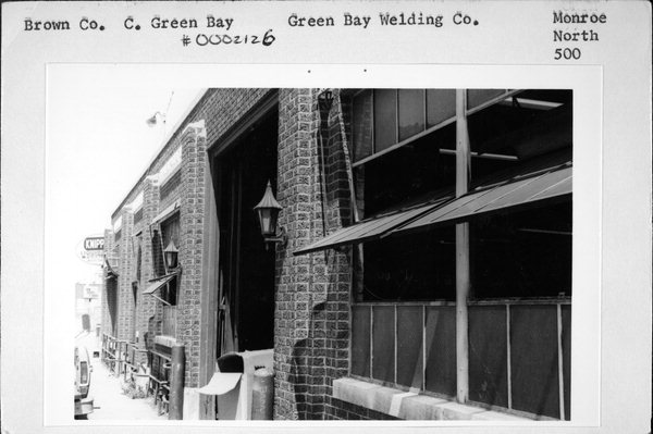 | Additional Information: | Photo code #2: BR-FRV 1/12,13 Fine intact design with pilastered facade with pilasters rising to cornice and having concret caps. Intact display windows and garage door on south facing facade. The entrance door on the main or west facing facade has a mitered arch entrance door surround with a palaque above with the date 1930 inscribed. The original metal carriage lamps flank the entrance door. The parapet above has terra cotta caping. This is a very fine intact example of the style. NAER INVENTORY (08/1979): The Green Bay Welding Co. building is a one-story brick structure with red monochromatic exterior, and a rectangular floor plan. The structure measures approximately 45' x 55', and has a flat roof, iron girders and concrete floor and foundation. John J. Wagner started business in Green Bay in 1919 at a site on Jefferson Street. In 1930 the present building was constructed by Mr. Wagner for his Green Bay Welding Co. The firm has occupied the structure since. Green Bay Intensive Survey Phases 2, 3 & 4 |